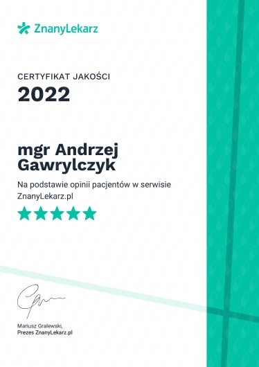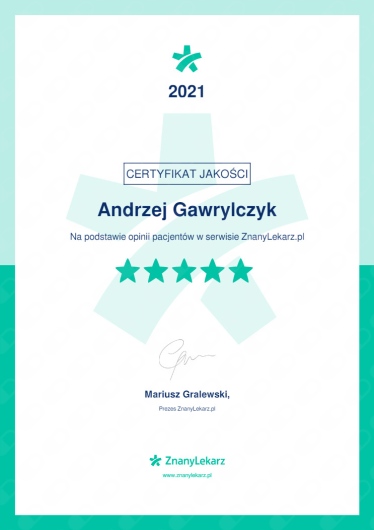 Jak Andrzej Gawrylczyk umawia wizyty?Andrzej Gawrylczyk używa kalendarza ZnanyLekarz, dlatego na stronie widzisz aktualne terminy. Wystarczy, że wybierzesz datę i godzinę, które odpowiadają Ci najbardziej. Umawianie wizyty jest darmowe, a tuż przed terminem wyślemy Ci przypomnienie.