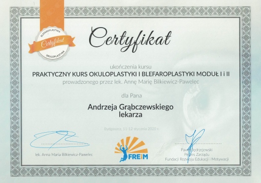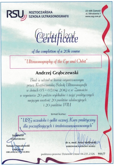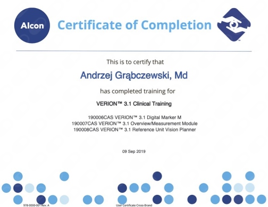 I am a member of the Polish Ophthalmological Society (PTO), European Society of Cataract & Refractive Surgeons (ESCRS), European Association of Retina Specialists (EURETINA), Tear Film & Ocular Surface Society (TFOS) and the European Dry Eye Society (EuDES).