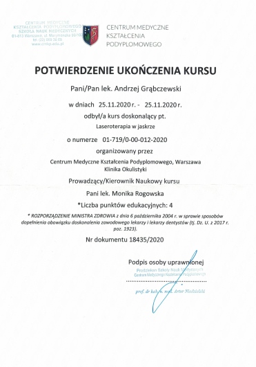I am a medical doctor, ophthalmologist, microsurgeon, senior assistant at Department and Clinic of Ophthalmology, Faculty of Medicine, Medical University of Warsaw.