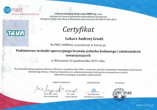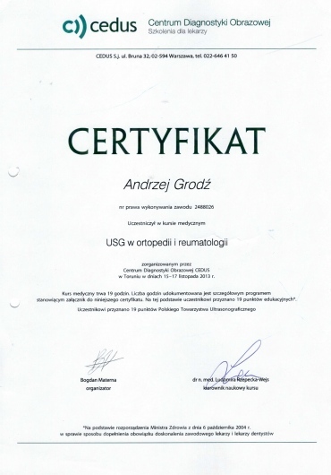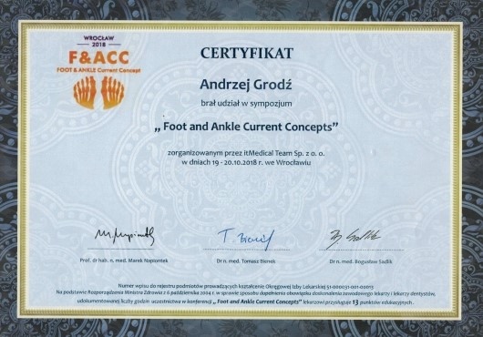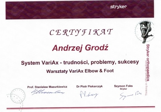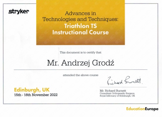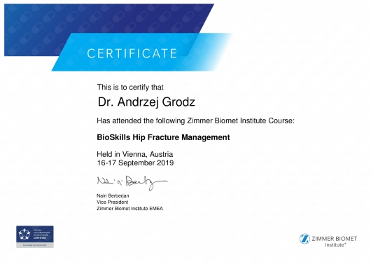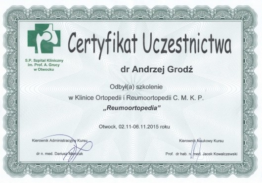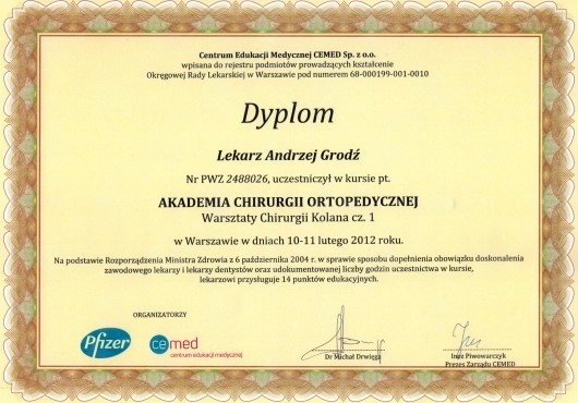 Specjalista Ortopedii i Traumatologii Narządu Ruchu.