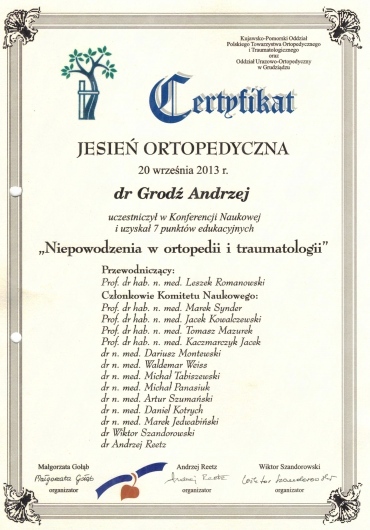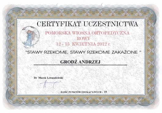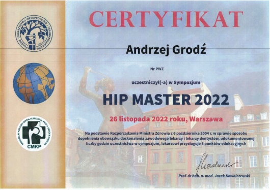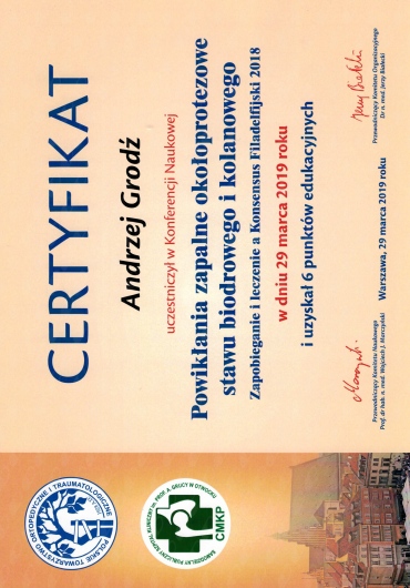 Członek Polskiego Towarzystwa Ortopedycznego i Traumatologicznego