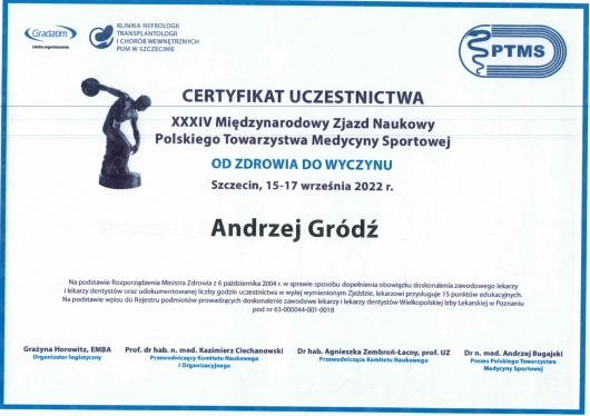 Członek Polskiego Towarzystwa Medycyny Sportowej