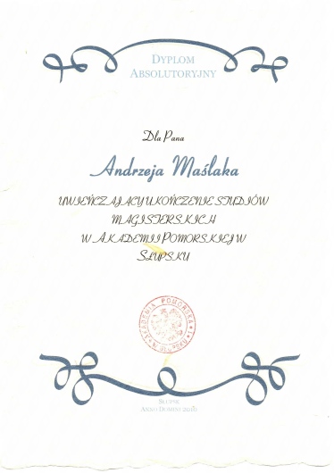 Jestem również absolwentem Akademii Pomorskiej w Słupsku gdzie uzyskałem tytuł magistra, na kierunku Pedagogika.