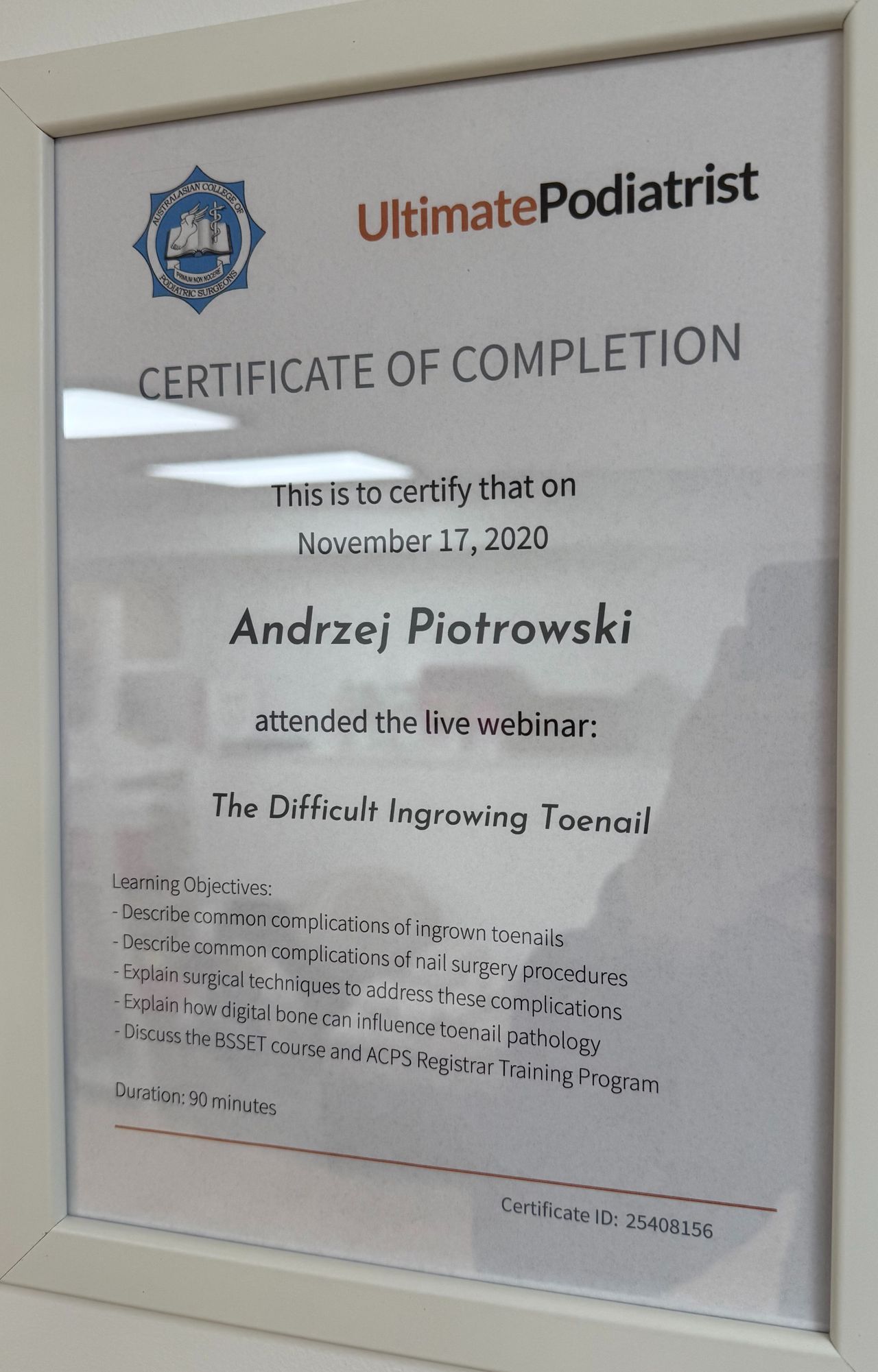 Mam na swoim koncie tysiące zakończonych terapii usuwania brodawek wirusowych, odcisków, paznokci wrastających, grzybiczych, pourazowych i innych. To mnie motywuje do ciągłego rozwoju i poszerzania swoich horyzontów. W pracy lubię wyzwania, a komfort i zadowolenie pacjenta to dla mnie najwyższe dobro. Ściśle współpracuję z lekarzem chirurgiem i wspólnie przeprowadzamy zabiegi chirurgiczne z zakresu plastyki paznokcia, wałów paznokciowych oraz opuszki palca, zajmujemy się również leczeniem trudnych i uporczywych zmian skórnych. Współpracuję również z wieloma fizjoterapeutami, ortopedami, dermatologami. Chętnie dzielę się swoją wiedzą z zakresu podologii i podologii chirurgicznej jako wykładowca i instruktor podczas konferencji i szkoleń. Interesuję się technologią obuwia i możliwościami ich wykorzystywania w problemach podologicznych.