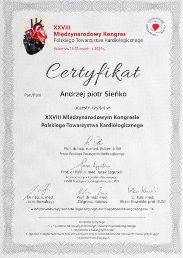 Jestem niezwykle wdzięczny za okazane mi wsparcie oraz wyróżnienie w Plebiscytach Medycznych HIPOKRATES 2024 i HIPOKRATES 2025, w których otrzymałem tytuł Kardiologa Roku.