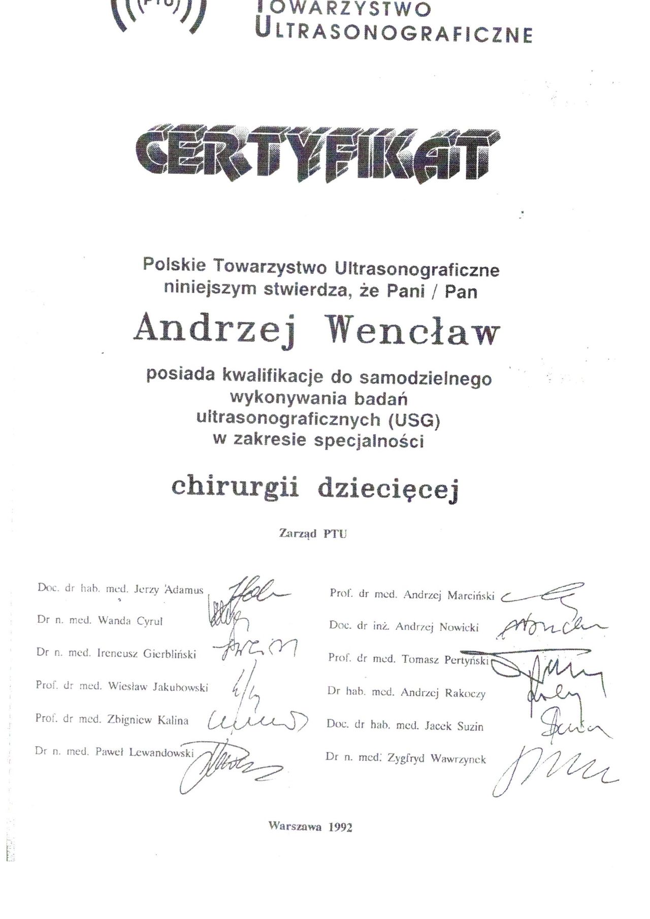 Jaki jest zakres porad oferowanych przez Andrzej Wencław?Andrzej Wencław to chirurg, chirurg dziecięcy. Na podstawie swojego doświadczenia i wykształcenia Andrzej Wencław oferuje usługi takie jak: Konsultacja chirurgiczna, USG bioderek - preluksacyjne.