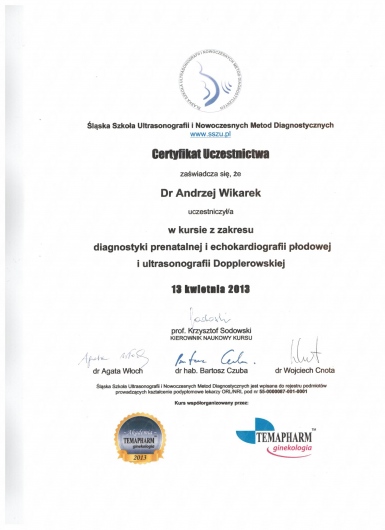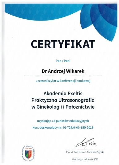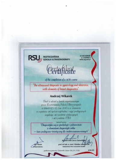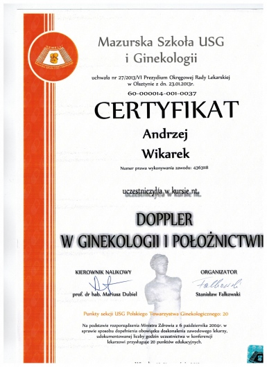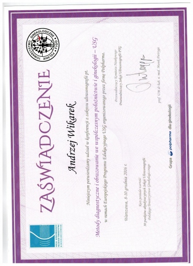 Nieustannie podnoszę swoje kwalifikacje poprzez uczestnictwo w wielu naukowych konferencjach z zakresu Ginekologii i Położnictwa. Posiadam również liczne certyfikaty ukończenie kursów praktycznych ultrasonografii ginekologicznej i prenatalnej.