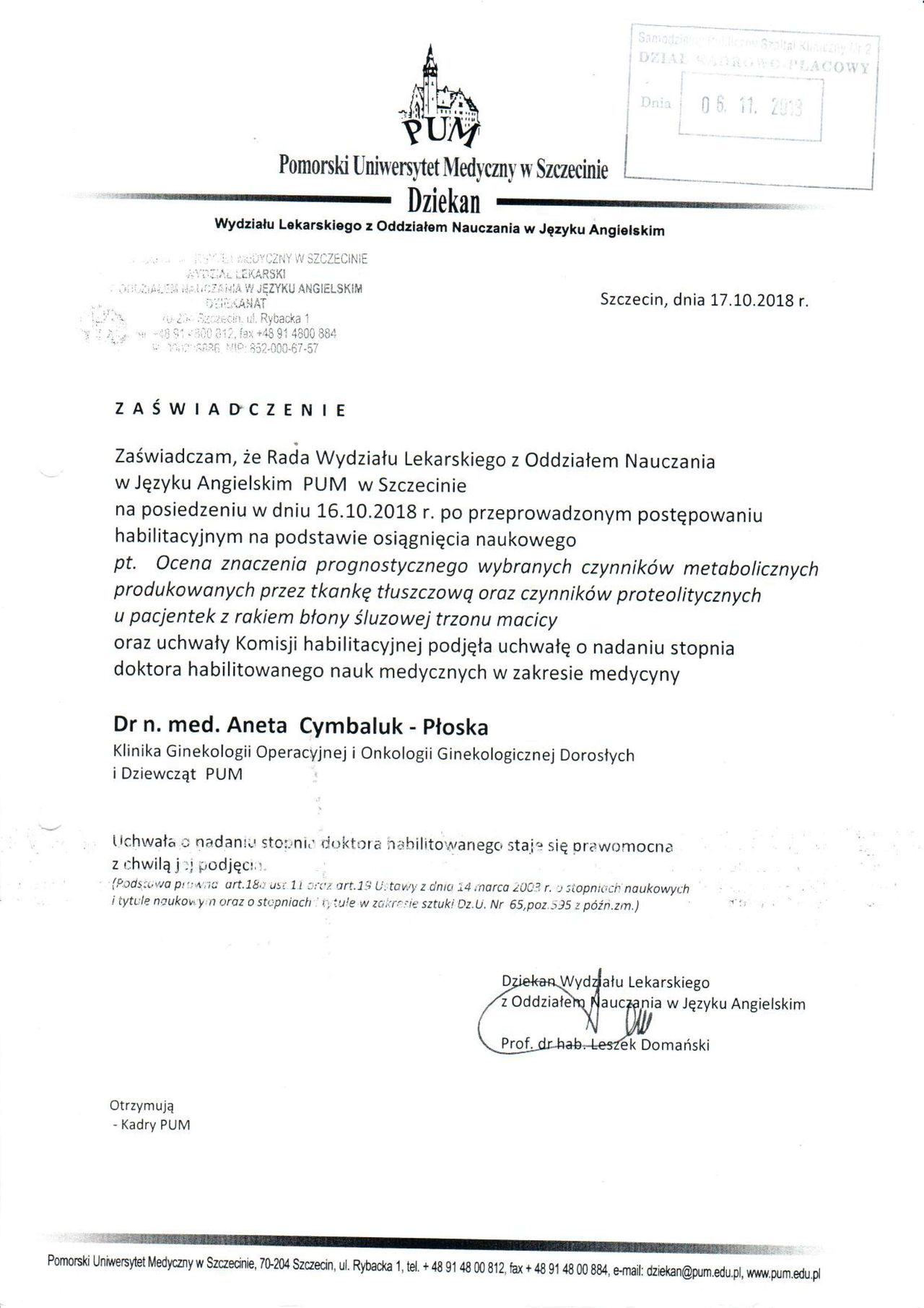 Specjalista ginekologii i położnictwa, specjalista ginekologii onkologicznej.