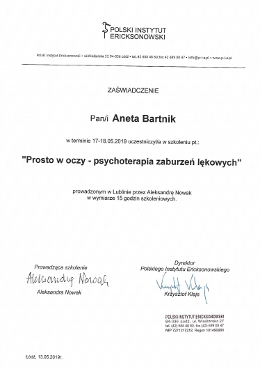 Aktualnie jestem po pierwszym spotkaniu z Panią Anetą i moje pierwsze wrażenie jest jak najbardziej pozytywne. Pani Aneta jest empatyczna, cierpliwa, zadaje trafne, dające do myślenia pytania. Chciałabym kontynuować spotkania. Polecam serdecznie