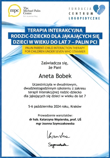 Terapia interakcyjna rodzic-dziecko dla jąkających się dzieci w wieku do lat 7 - PALIN PCI - dr hab. Katarzyna Węsierska, prof. UŚ