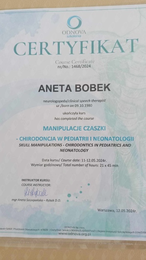 Manipulacje czaszki. Chirodoncja w neonatologii i pediatrii - mgr Aneta Szczepańska-Rybak