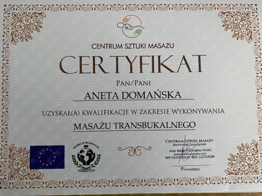 Polecam gorąco Panią Anetę, jest wyjątkową profesjonalistką. Pomogła mi z bólem szyi i pleców. Z zaangażowaniem potrafi przeprowadzić terapię. Jest osoba o wyjątkowych umiejętnościach, prezentuje skuteczne metody leczenia. A masaż kobido w wykonaniu p. Anety jest najlepszym jaki miałam do tej pory,bardzo polecam!