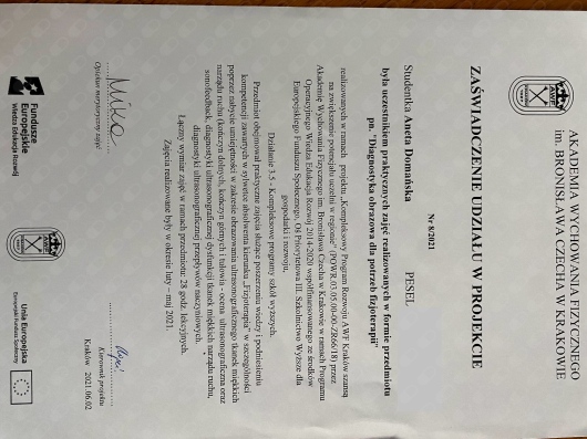 Tytuł magistra fizjoterapii zdobyłam na Akademii Wychowania Fizycznego w Krakowie. Ukończyłam tam również studia licencjackie na kierunku Terapia Zajęciowa. Doświadczenie zdobywałam już w podczas studiów, uczestnicząc w praktykach klinicznych w szpitalach, odbywając staż w prywatnym Ośrodku Specjalistycznej Rehabilitacji Stacjonarnej "Kwitnąca", a także uczęszczając na liczne szkolenia i kursy. Obecnie pracuję w prywatnym gabinecie jako fizjoterapeuta oraz trener. Na co dzień pracuję z pacjentami bólowymi, ortopedycznymi oraz sportowcami a także prowadzę treningi EMS. Najbardziej pasjonuje mnie wykonywanie terapii i masaży w obrębie twarzy, ale największą satysfakcję czerpię po prostu z pracy z drugim człowiekiem. Podczas rehabilitacji korzystam z technik terapii manualnej, a także masażu tkanek głębokich, pinoterapii czy kinesiotapingu. Niezwykle ważna jest dla mnie również edukacja pacjenta i świadome odczuwanie przez niego własnego ciała - dlatego zawsze staram się wytłumaczyć jaki cel ma dane ćwiczenie bądź konkretna technika. Wyróżnia mnie to, że każdy pacjent traktowany jest przeze mnie z należytą empatią i troską oraz w sposób holistyczny, i indywidualny, co prowadzi nie tylko do szybkiego powrotu do sprawności, ale również gwarantuje przyjazną atmosferę otwartości i profesjonalizmu. Ukończone szkolenia: * Masaż tkanek głębokich * Diagnostyka obrazowa dla potrzeb fizjoterapii * Masaż Kobido Up z kinesiotapingiem twarzy * Kliniczne problemy stawów skroniowo-żuchwowych * Pinoterapia by FRSC * Masaż Cupping Facial Lift * Masaż transbukalny Prywatnie - kocham wszelaki sport. Uwielbiam zdobywać szczyty górskie, a także spędzać jak najwięcej czasu z moim pieskiem :)