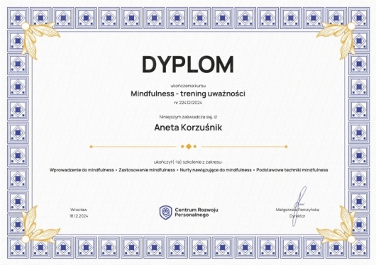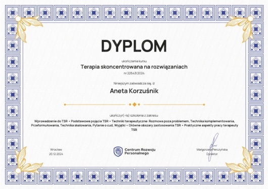 Pani Aneta to terapeutka z prawdziwego powołania. Ma nie tylko imponującą wiedzę i kompetencje, ale też pasję, którą czuć w każdej rozmowie. Jej profesjonalizm idzie w parze z autentycznym zaangażowaniem. Naprawdę słucha i trafia w sedno. Spotkania z nią potrafią zmieniać perspektywę i wprowadzać realną zmianę w życiu. Jeśli ktoś szuka specjalisty, który nie tylko pomaga, ale też faktycznie działa – to zdecydowanie właściwy adres. Polecam z całego serca.