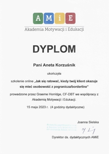 Podczas terapii z mgr Anetą Korzuśnik doświadczyłam powtarzalnych odwołań sesji (dwukrotnie z powodu choroby dziecka), braku odpowiedzi na istotne pytania organizacyjne oraz nadinterpretacji moich wiadomości, które dotyczyły wyłącznie faktów. Taki brak stabilności wywoływał poczucie niepewności i utrudniał kontynuowanie pracy terapeutycznej. Moja ocena opiera się wyłącznie na faktach, bez koloryzowania. Aby skutecznie wspierać pacjentów, mgr Korzuśnik powinna oddzielać życie prywatne od zawodowego, podchodzić do klienta otwarcie emocjonalnie, a nie jedynie zadaniowo, oraz pamiętać, że pacjent nie powinien czuć się odpowiedzialny za przebieg sesji. Uwzględnienie tych elementów jest kluczowe dla bezpieczeństwa i efektywności procesu terapeutycznego.