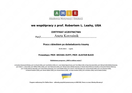 Dzień dobry. Szukam psychoterapeuty, który jest w stanie pomóc dorosłej osobie, która nie radzi sobie z relacjami z toksycznymi rodzicami. Miejsce nie ma znaczenia. Odpowiada mi kontakt online.