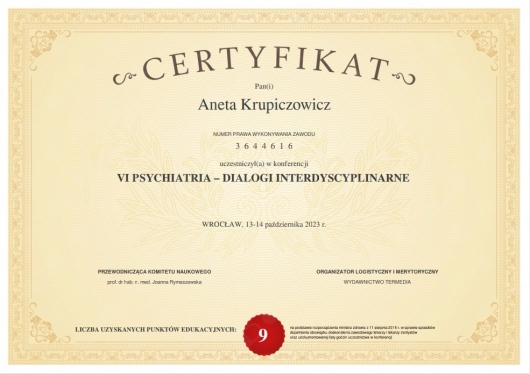 Jej profesjonalizm widać w każdym aspekcie- od szczegółowego wywiadu, przez trafne postawienie diagnozy, aż po skuteczne prowadzenie leczenia. Trafiłam do gabinetu Pani doktor w bardzo trudnym momencie mojego życia, pełna lęku i bez nadziei. Spotkałam tam nie tylko wybitną profesjonalistkę, ale przede wszystkim niezwykle empatycznego człowieka. Pani Doktor stworzyła atmosferę pełną zaufania i bezpieczeństwa, w której mogłam się otworzyć.