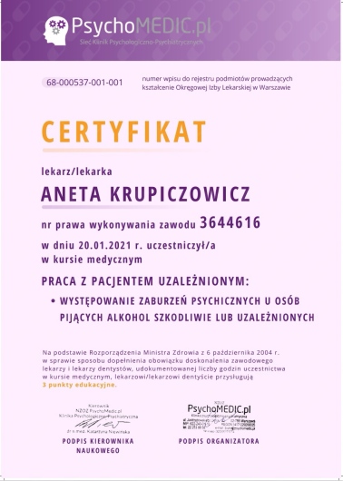 Aneta Krupiczowicz: co mówią pacjenci?54 osób dodało swoją opinię. Aneta Krupiczowicz ma średnią ocen 5 (na 5 gwiazdek).