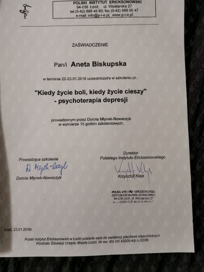 Pani Aneta jest osobą empatyczną, cierpliwą oraz umiejącą słuchać. Wyróżnia ją profesjonalne podejście do problemów i duże zaangażowanie w proces terapii. Szczerze polecam.