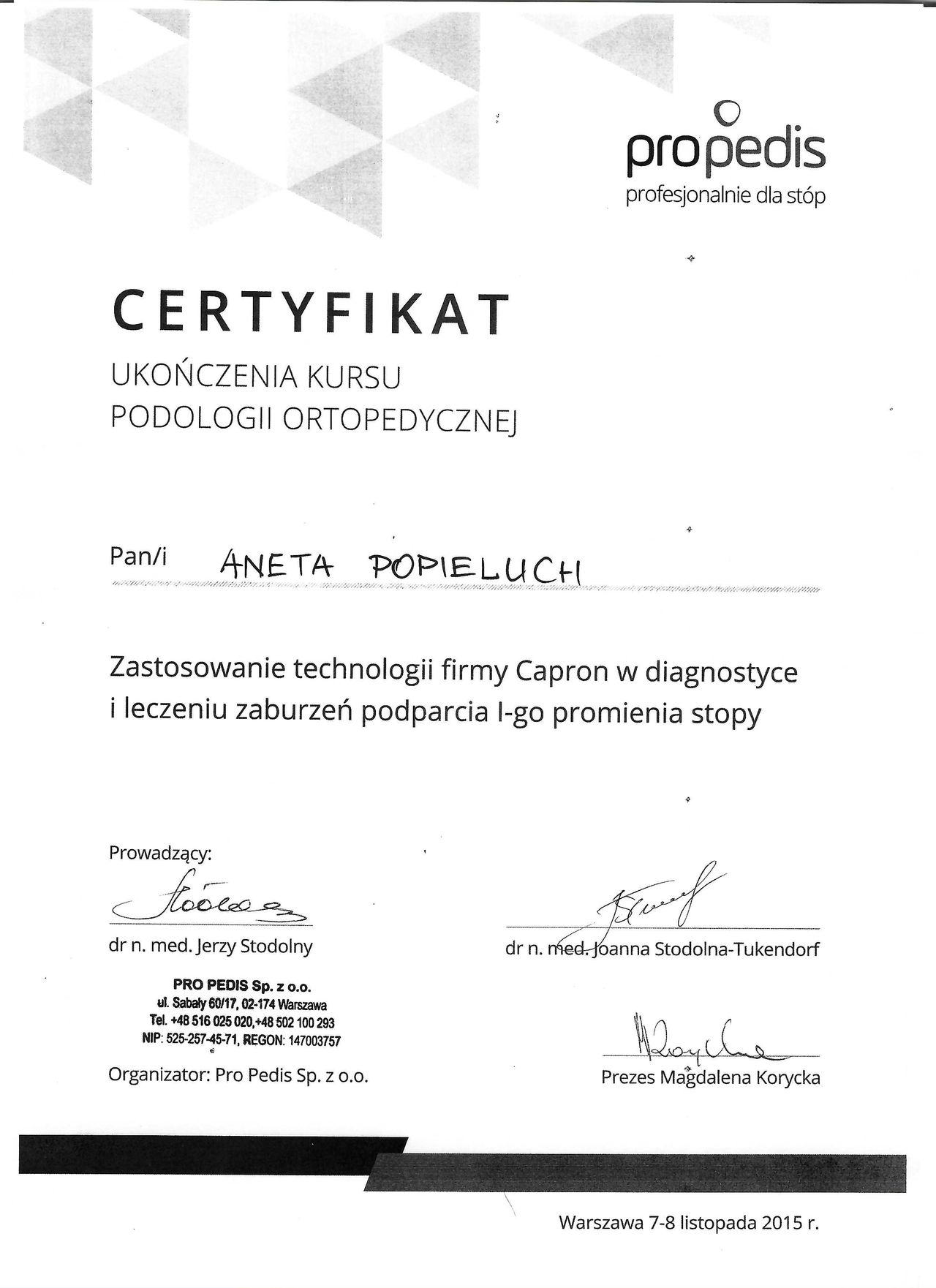 Badamy stopy i wykonujemy wkładki ortopedyczne.