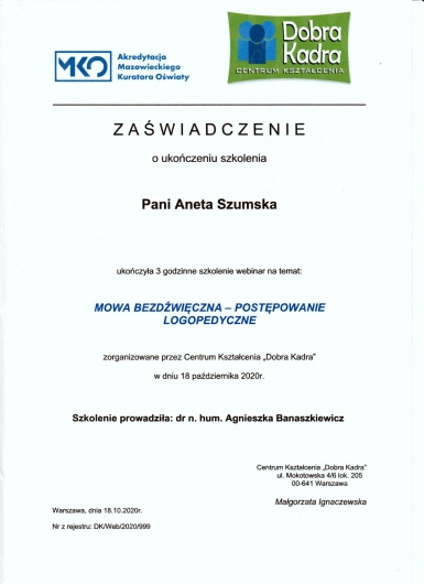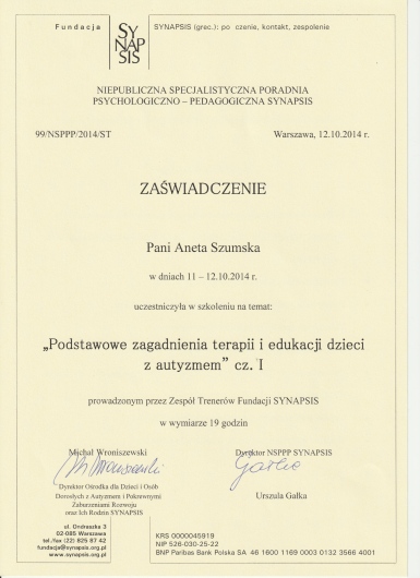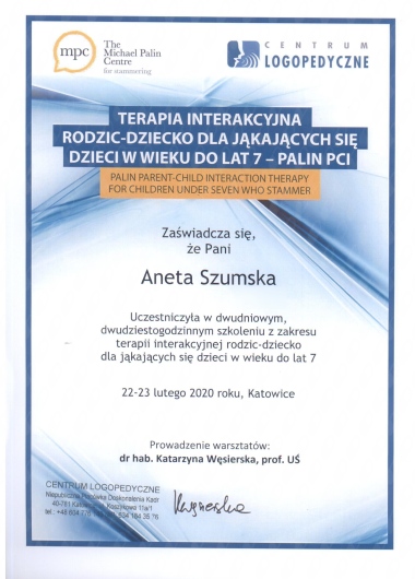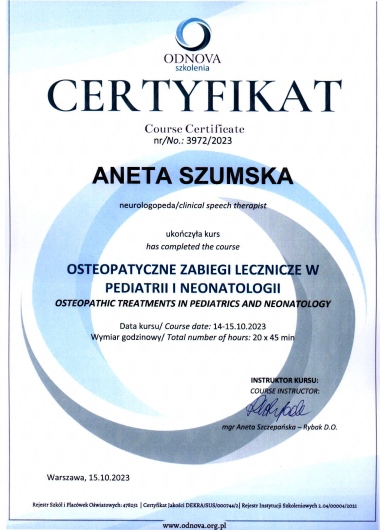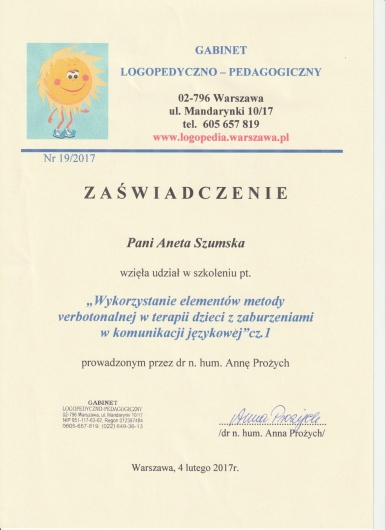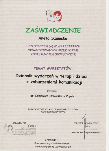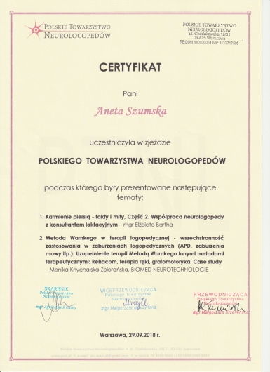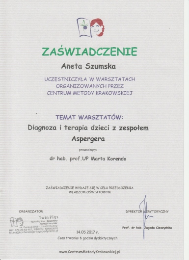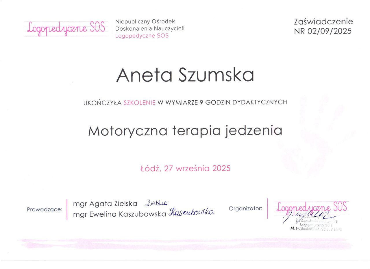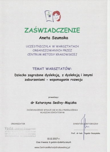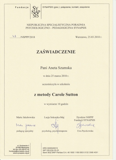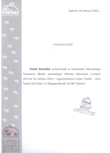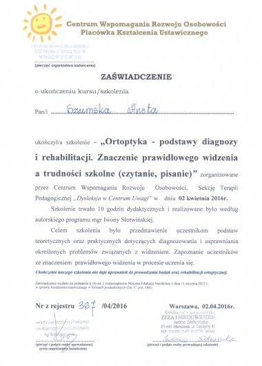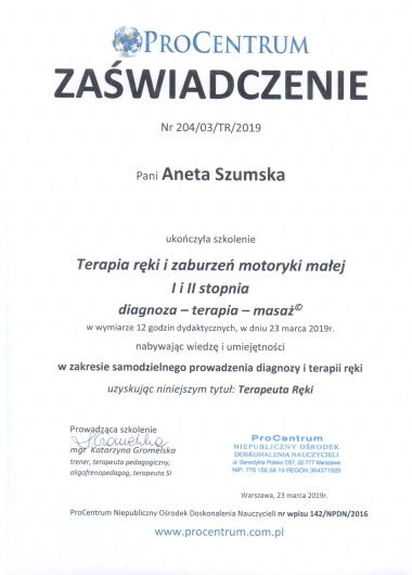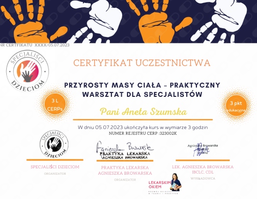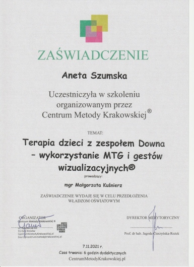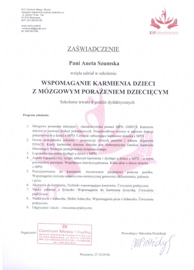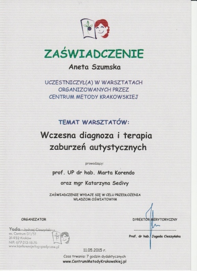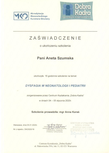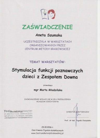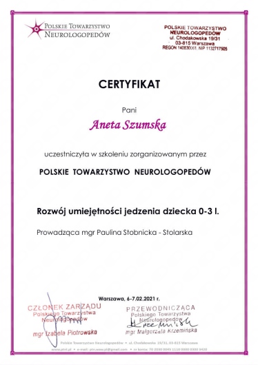 - Terapeuta wczesnej interwencji i wspomagania rozwoju dziecka od 0 do 6 r. ż.