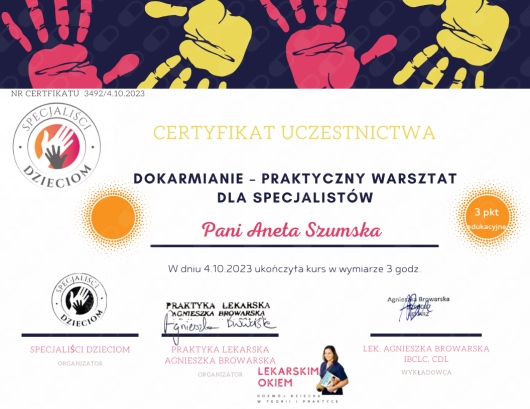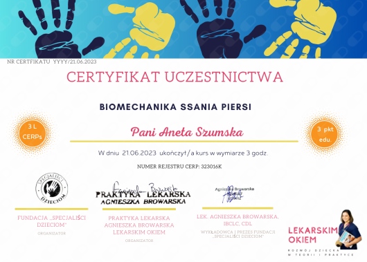 - Zaburzeń karmienia: problemy ze ssaniem/połykaniem, wsparcie w karmieniu piersią/butelką, dobór smoczków, kubków, butelek do karmienia, trudności z rozszerzaniem diety, kolka/refluks