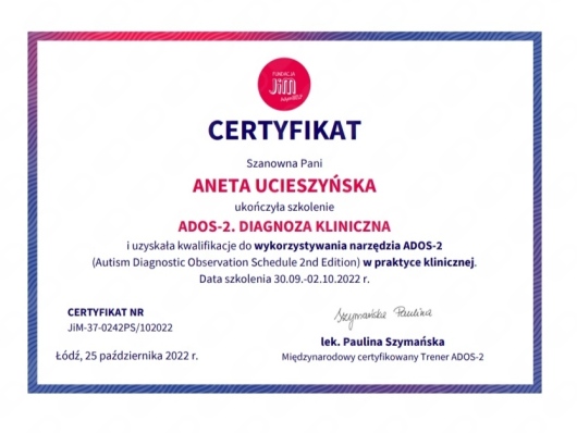 - Diagnozę i terapię osób ze spektrum autyzmu, ADHD oraz innymi zaburzeniami neurorozwojowymi
