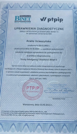 - Diagnozie inteligencji z użyciem testu Stanford Binet-5