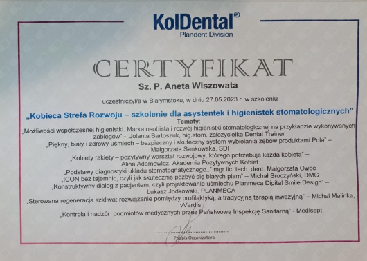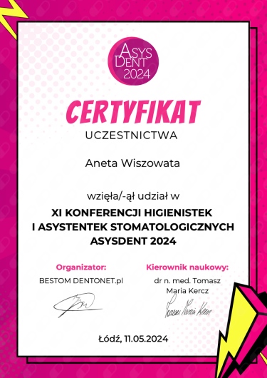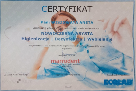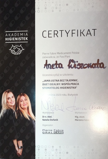 Podstawy wiedzy medycznej zdobyłam w latach 2012-2014 w Medycznym Studium w Łomży na kierunku higienistka stomatologiczna.