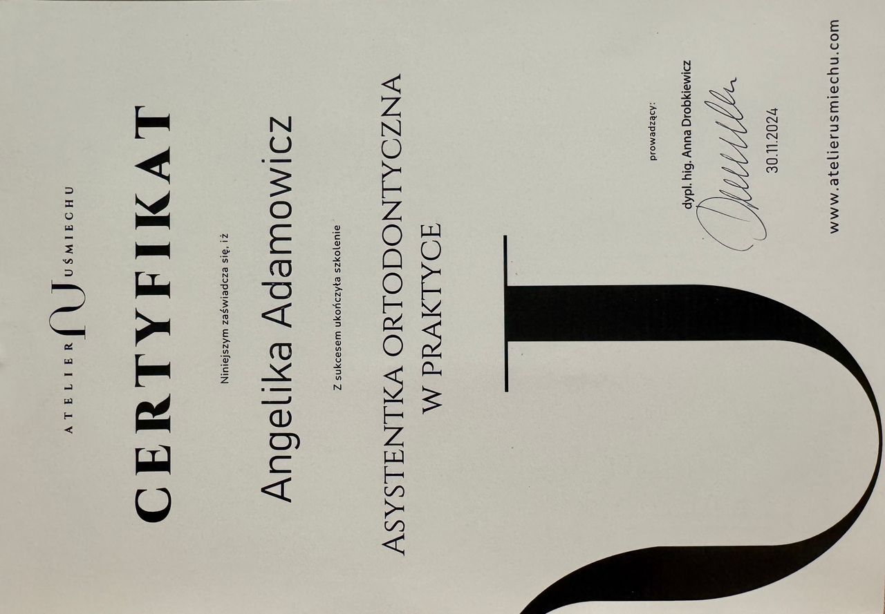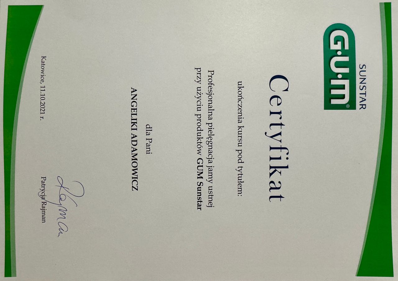 Całą wizytę wspominam bardzo dobrze, od pani Angeliki czuć zaangażowanie i radość z wykonywanej pracy. W przeszłości higienizacja, usuwanie kamienia czy piaskowanie to czynności, które kojarzyły mi się z bólem. Po ostatniej wizycie zmieniłem zdanie — okazało się, że może być komfortowo, a co najważniejsze skutecznie, efekty są widoczne gołym okiem. Gorąco polecam, w przyszłości na pewno wrócę!