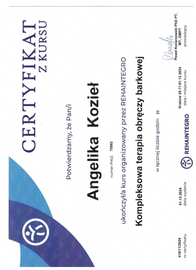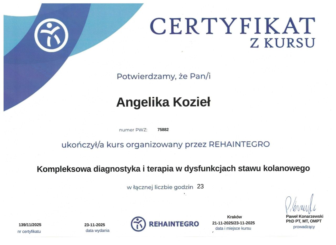 • mgr Angelika Kozieł • Fizjoterapia (kolejna wizyta) •