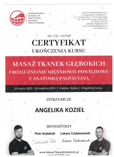 • mgr Angelika Kozieł • masaż tkanek głębokich •