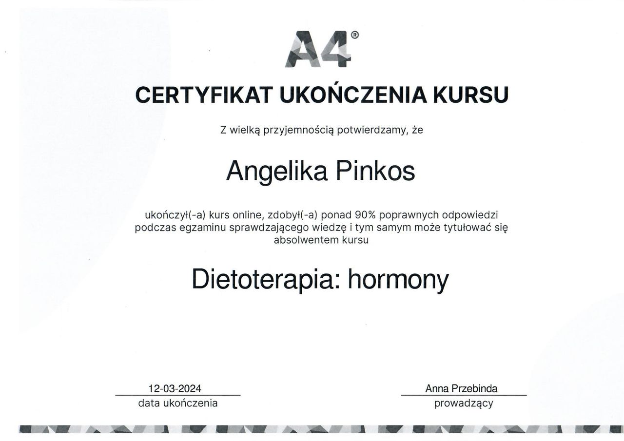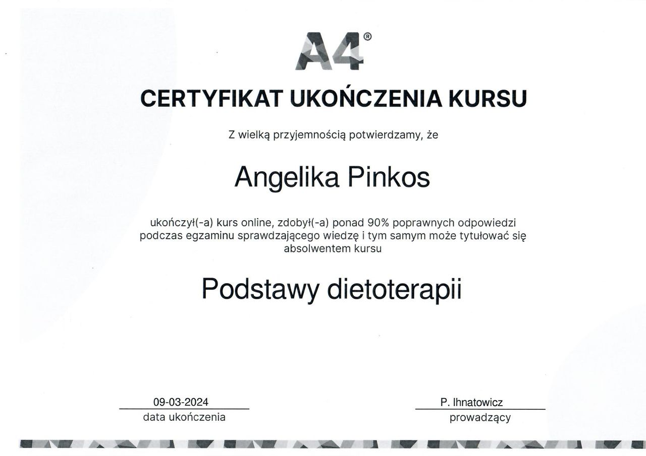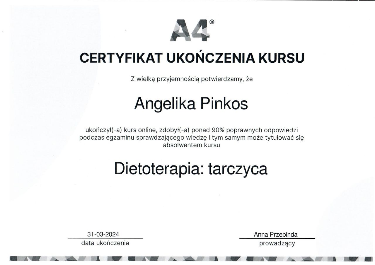 Jaki jest zakres porad oferowanych przez Angelika Pinkos?Angelika Pinkos to dietetyk. Na podstawie swojego doświadczenia i wykształcenia Angelika Pinkos oferuje usługi takie jak: konsultacja dietetyczna (pierwsza) + analiza składu ciała, edukacja żywieniowa, konsultacja dietetyczna (pierwsza wizyta), Konsultacja dietetyczna (kolejna wizyta), Pierwsza konsultacja dietetyczna + 7 dniowy jadłospis, Pierwsza konsultacja dietetyczna + 14 dniowy jadłospis, konsultacja dietetyczna + jadłospis 7-dniowy, konsultacja dietetyczna + jadłospis 14-dniowy, Konsultacja psychodietetyczna (pierwsza wizyta), Konsultacja psychodietetyczna (kolejna wizyta).