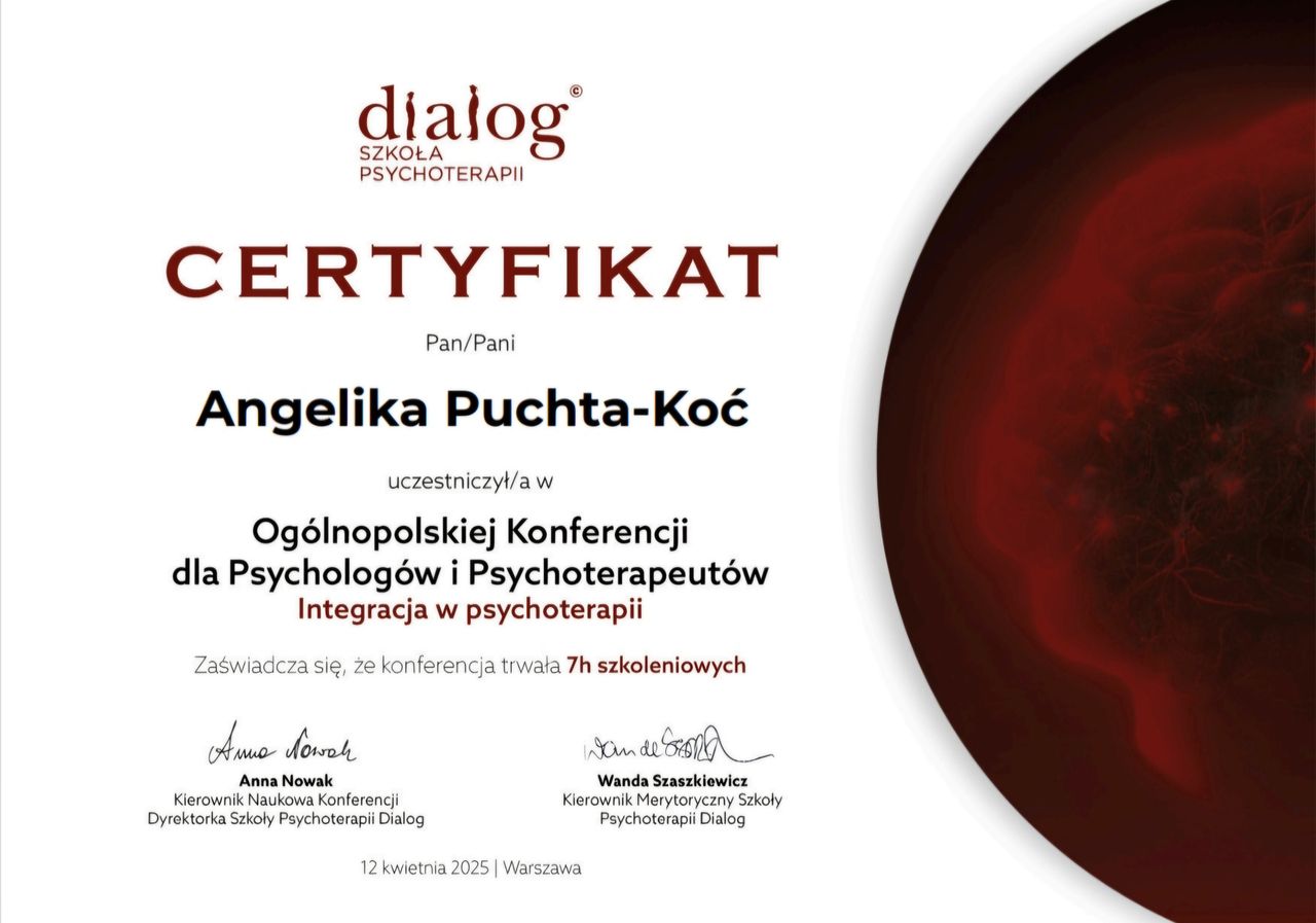 Jesteś już po wizycie u mgr Angelika Puchta-Koć ? Daj znać, co myślisz. Inni pacjenci będą wdzięczni za pomoc w wyborze najlepszego specjalisty.
