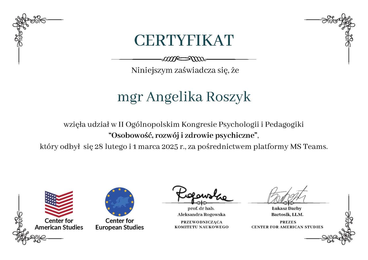 Czy Angelika Roszyk przyjmuje online, bez konieczności pojawiania się w placówce?Tak, Angelika Roszyk oferuje konsultacje online. Wybierz opcję „konsultacja online” przy umawianiu wizyty, a zobaczysz dostępne terminy.