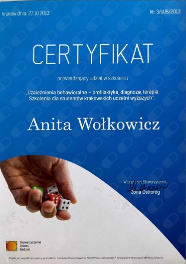Ukończyłam kierunek psychologii na Uniwersytecie Jagiellońskim na Wydziale Filozoficznym oraz Studium Pedagogicznego UJ.