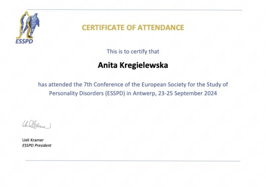 Moja praca jest moją największą pasją, w związku z tym cały czas poszerzam swoje kompetencje uczestnicząc w konferencjach naukowych i szkoleniach, a moją pracę regularnie superwizuję. Lubię czytać nowe książki z mojej dziedziny, zdobywać nową wiedzę a potem dzielić się nią ze swoimi Pacjentami.