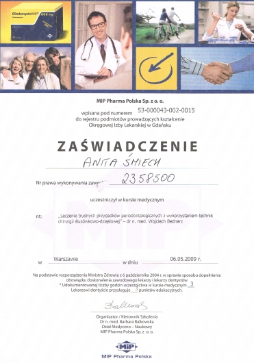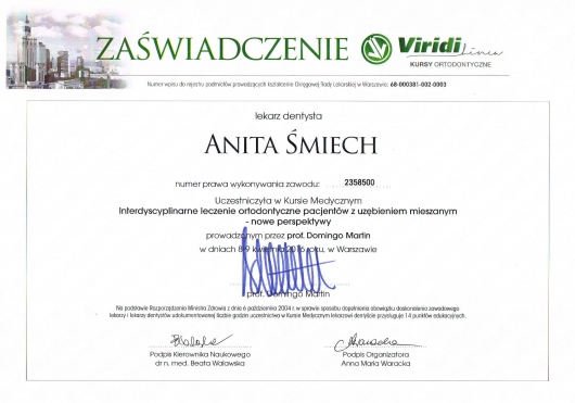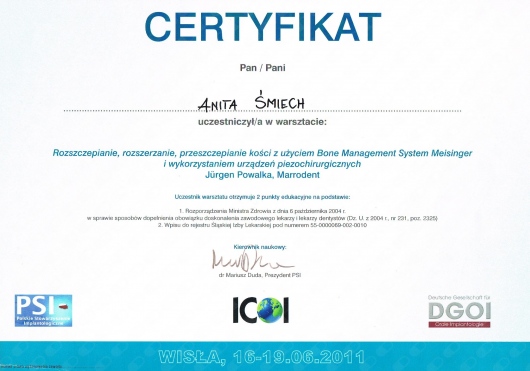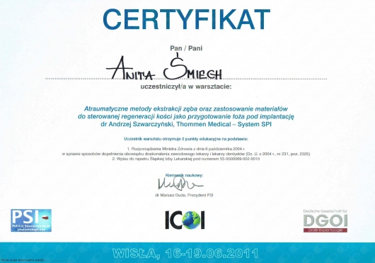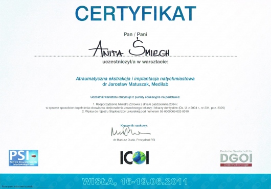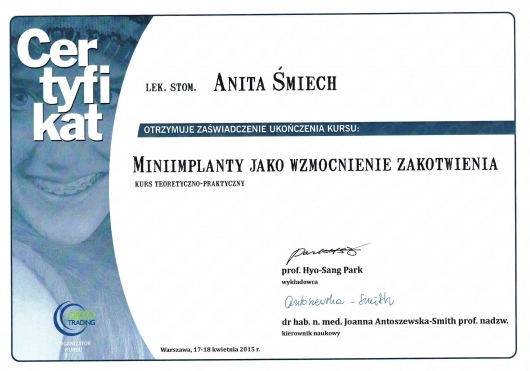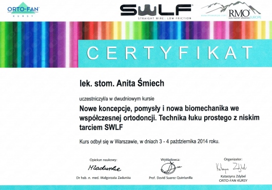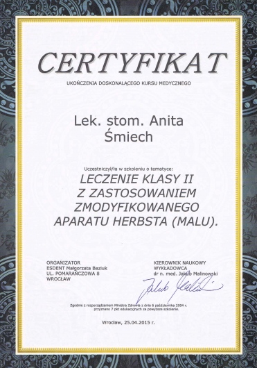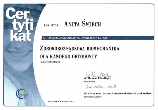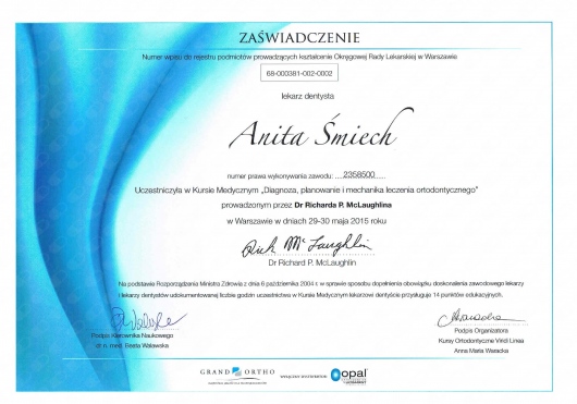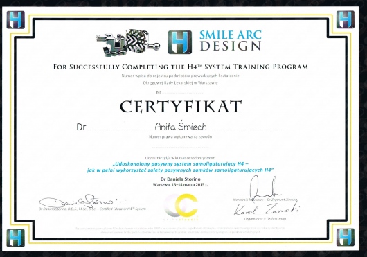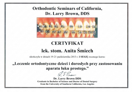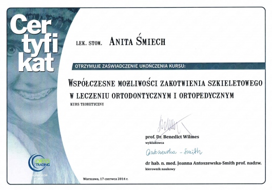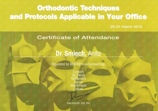 Wiedzę zdobytą na szkoleniach wdrażam w leczeniu moich Pacjentów. Przy użyciu nowoczesnych technik dążę do skrócenia czasu leczenia ortodontycznego do absolutnego minimum.