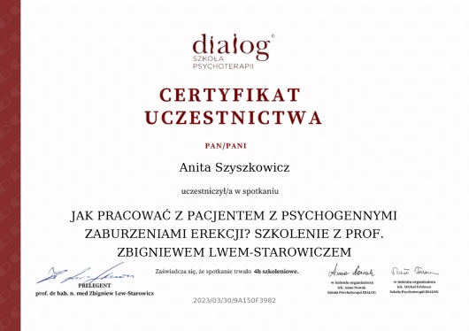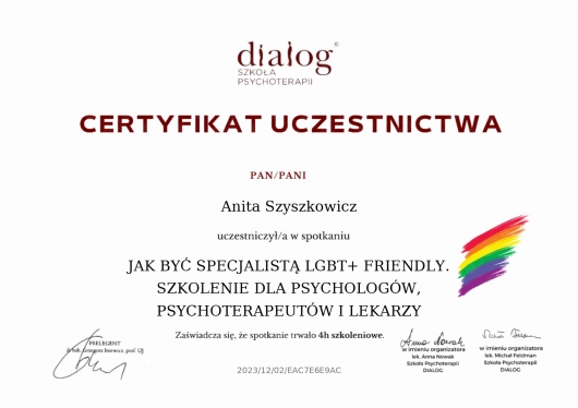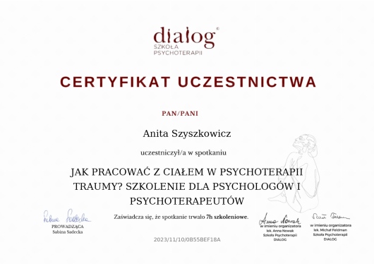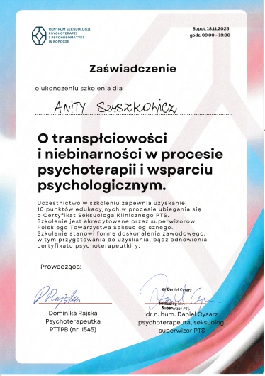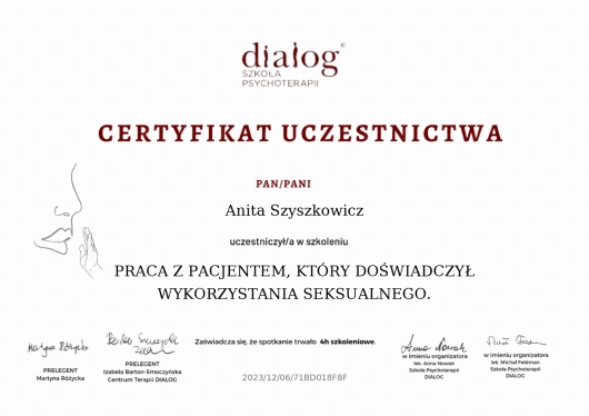 Bardzo polecam Pania Anite. Duzy stress przed spotkaniem naturalnie ale bardzo szybko poczulam sie komfortowo. Bardzo polecam jesli boisz sie podjac ten pierwszy krok tak jak ja to Pani Anita napewno ma super podejscie dziekuje!