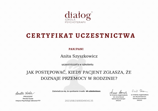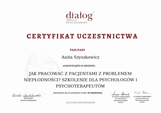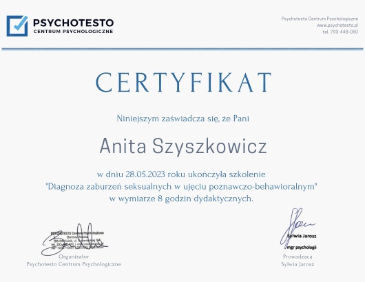 Pani Anita jest empatyczną i ciepłą osobą. Dzięki temu czułam się swobodnie na wizycie pomimo moich wcześniejszych obaw. Polecam, bo naprawdę łatwo przy niej otworzyć się i szczerze o sobie opowiedzieć.