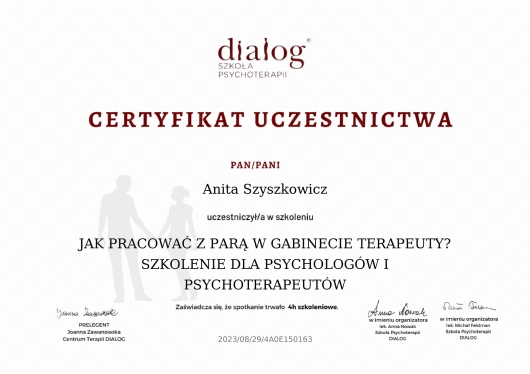 Z Pania Anita rozmowa odbywa sie w przyjaznej atmosferze i terapia par zapowiada sie naprawde dobrze.