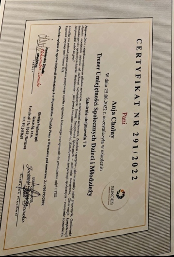 Bardzo polecam Panią Anję. Córka mimo, że jest skryta nastolatka bardzo szybko otworzyła się na spotkaniach. Pani Anja umie zaskarbić sobie sympatię i zaufanie nie tylko nastolatków ale i rodziców. Dzięki fachowej pomocy córka bardzo szybko stanęła na nogi i znowu cieszy się z nastoletniego życia.