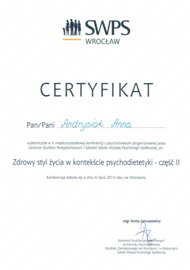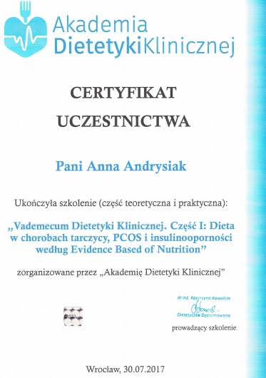 Szczerze polecam panią Anię. Na każdej wizycie miła, przyjazna atmosfera, rzeczowo udzielane porady. Co najważniejsze nie pozwoli się poddać. Jest nie tylko dietetykiem ale i psychologiem. Zawsze można do niej napisać, nie zostawia pacjenta samego sobie.. Zawsze podniesie w chwilach słabości.