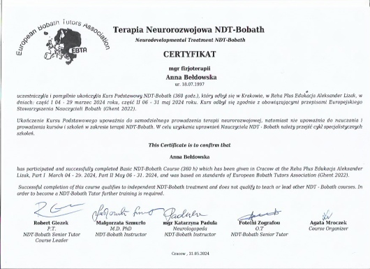 2024 r. – Terapia Neurorozwojowa NDT – Bobath
