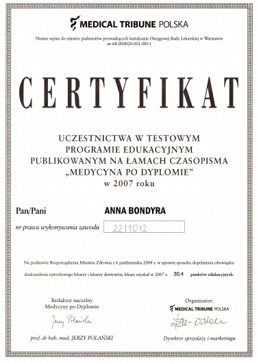 Przyjmuję online w Centrum Terapii Dialog. Posiadam uprawnienia do wystawiania e-recept na leki refundowane (NFZ), e-zwolnień lekarskich ZUS-ZLA (L4) oraz e-zaświadczeń.