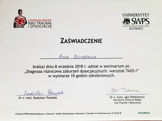 • "WBREW POZOROM" PSYCHOTERAPIA ANNA BYSTRZYCKA • Psychoterapia •