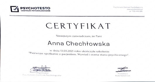 Jest to lekarka z powołania, która stara się dobrze rozeznać w sytuacji zanim podejmie jakiekolwiek próby udzielenia pomocy. Pani Anna od początku dążyła na naszych spotkaniach do konkretnego celu. Jest to osoba empatyczna, która nie pośpiesza, nie ocenia i nie daje odczuć żadnego nacisku. Delikatnie naprowadza i pokazuje pewne rzeczy, co pozwala się odblokować. Dzięki wizytom u niej zacząłem zauważać pewne swoje zachowania, dzięki jej pomocy udało mi się odblokować i porozmawiać z bliskimi. Nie zrobi nic za nas, ale z całą pewnością ułatwi nam drogę do wyjścia na prostą. Jestem Pani Annie niesamowicie wdzięczny za pomoc.