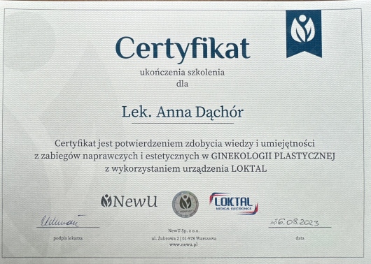 Z zakresu flebologii przeprowadzam zabiegi skleroterapii oraz stosuje wewnątrznaczyniowe metody leczenia żylaków. Z zakresu proktologii wykonuję laserową plastykę hemoroidów, ostrzykiwanie skleroterapią, leczenie przetok, kłykcin , ropni , torbieli pilonidalnych i wiele innych . Ponadto zabiegi leczenia szczeliny odbytu za pomocą botoksu czy lasera. Dodatkowo zdobyłam umiejętności z ginekologii estetycznej w zakresie labioplastyki, ostrzykiwania punktu "O", kwasu hialuronowego, osocza, nici liftingujących , laserowej rewitalizacja pochwy z użyciem Radiofrekwencji, leczenie nietrzymania moczu ,leczenie objawów atroficznych pochwy po radio i chemioterapii, leczenie liszaja twardzinowego, leczenie blizn