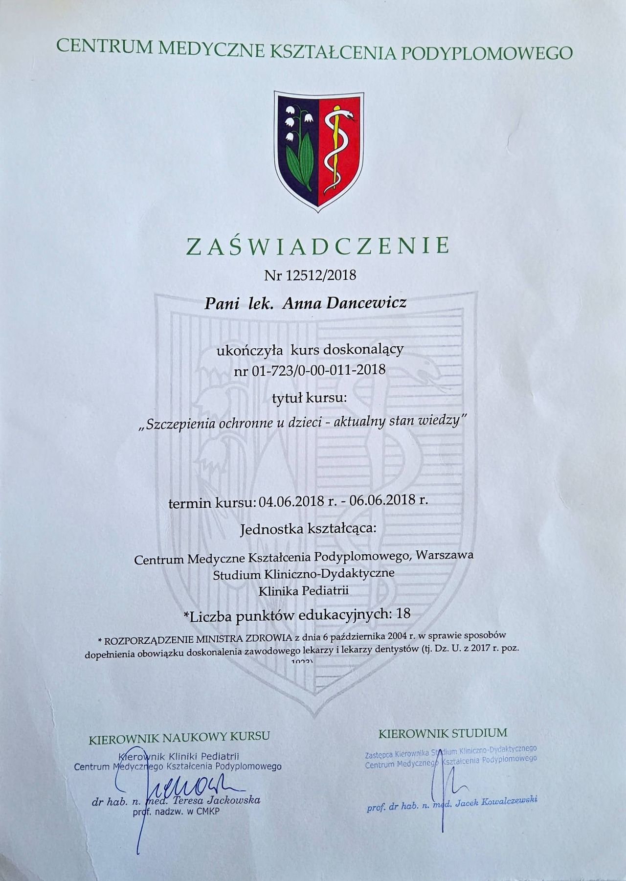 W 2024 roku zostałam uhonorowana tytułem Pediatry Roku we Wrocławiu oraz zajęłam III miejsce w województwie dolnośląskim w plebiscycie Hipokrates.
