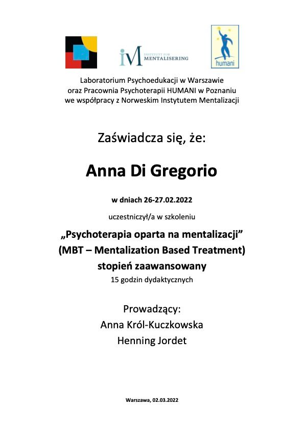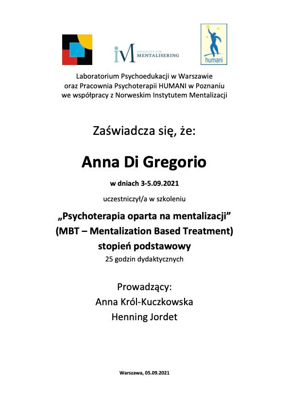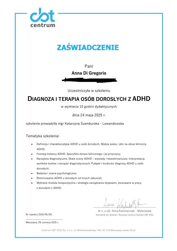 • Psycholog Anna Di Gregorio. • Konsultacja psychologiczna •